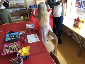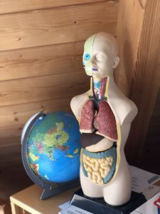 また、ドイツでは基本的に異年齢保育ですが、「子どもの発達過程によって違っていることを受け入れる」とあり、大切なのは、小学校に入る時点で、皆同じ能力を持つということだと言います。また、異年齢で過ごすと、面白そうなものは5歳児が独占する可能性があります。しかし、飽きて他のゾーンに行った5歳児を見ていて、急いで3歳児がそのゾーンで遊ぶそうです。ゾーンの中で最近人気のあるのが人体模型だそうです。各部を取り外せるようになっていて、それを組み立てて遊びます。こちらの人体模型は日本に帰国後、当園にも導入いたしました。子どもたちも初めは恐る恐る触っていましたが、今では人気のコーナーの一つです。