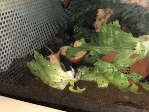 また、大きなかたつむりを飼育するなど生き物とのふれあいを大切にしていました。この大きなカタツムリは買ってきたそうです。そして、園で卵を産み、小さなカタツムリが生まれたそうです。