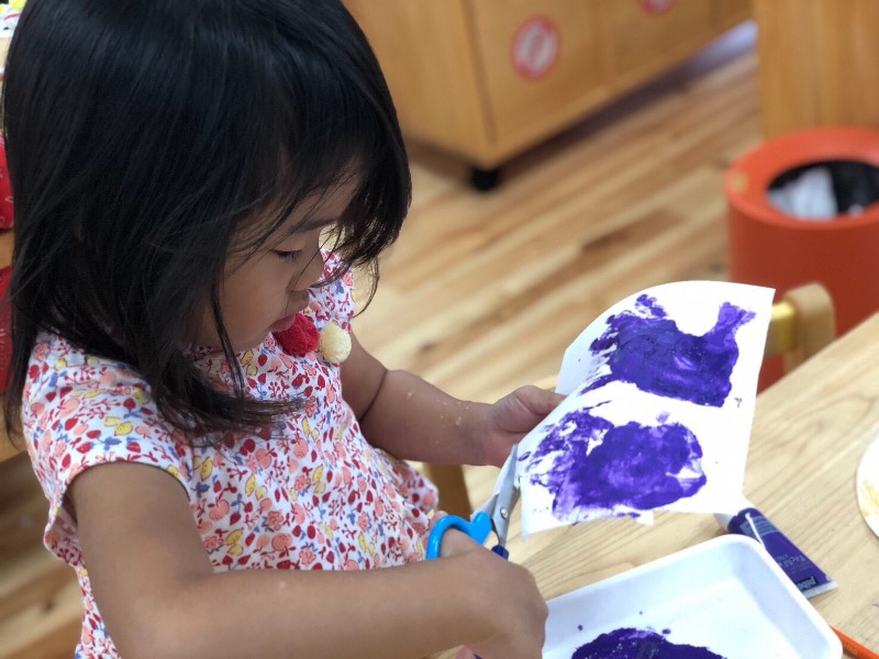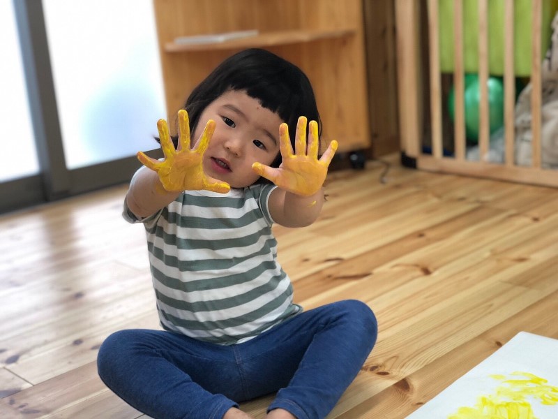 絵の具の感触や、ぺたぺたとスタンプする感触が面白かったようで、