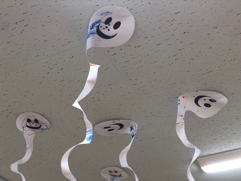 先生がハサミでチョキチョキ切ると・・・天井にオバケがいっぱい!!