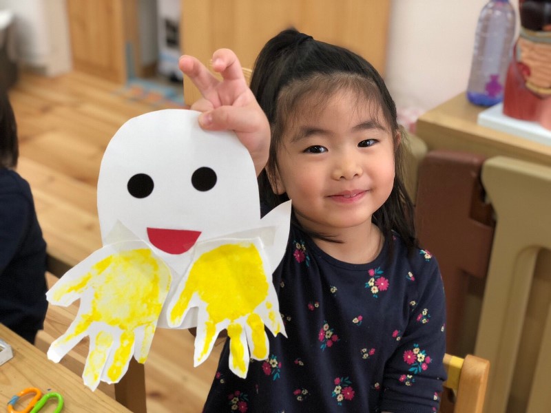 1歳児クラスさんの手形は、オバケではない何かになるようです。