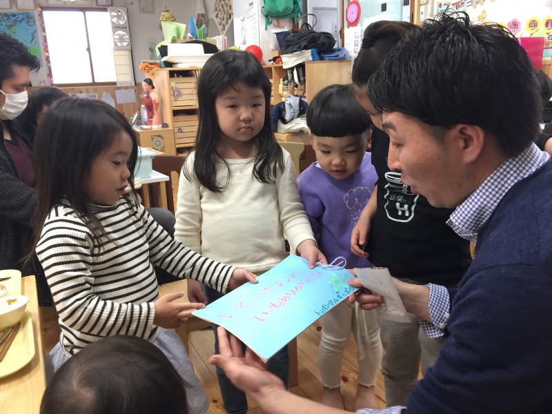 子どもたちからは、ありがとうの気持ちを込めて、プレゼントを渡しました。