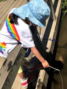 ちいさなミナミヌマエビがとれたようで、大喜びしていました。