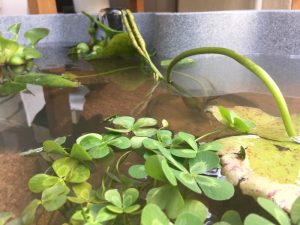 みんなビオトープが気に入ったみたいで、元気にすいすい泳いでいます。