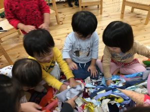 モコモコやツルツルの手触りの違いに気付く子どももいました。