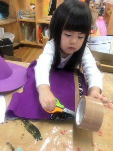 画用紙やハサミ、テープを使って思い思いに作ります。