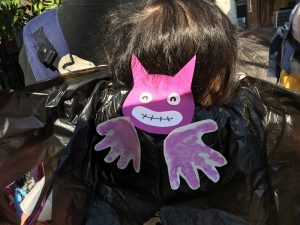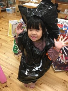黒のビニール袋をリメイクした大きなコウモリもいました!