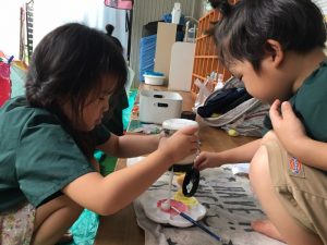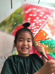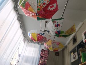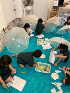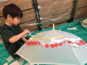 傘という大きなキャンバスを彩るには、午前中の活動の時間だけでは足りなくて、子ども達は