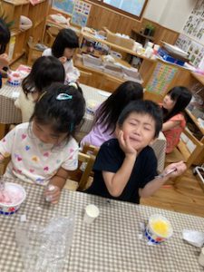毎日暑いですが、子どもたちは毎日とても元気に夏を過ごしています。先日はわくどきグループのみんなでかき氷作りをしました。その様子はまた後日UPしようと思うので楽しみにお待ちください♪