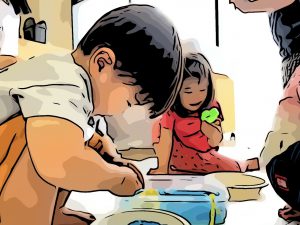 室内の広いスペースでは、日替わりで小麦粉粘土、寒天あそび、シェービングフォームをつかった泡実験などなど、ゾーンの内容はさまざま。
