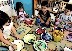 使いたい色と使いたい量を自ら選び、自由にアートを楽しみます。
