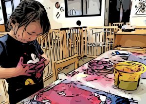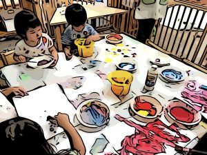 絵の具だったり、マスキングテープだったり、その日にヒットするモノやタイミングは一人ひとり全然違うところがまた面白い。