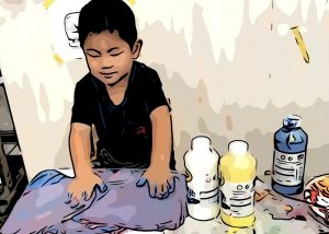 アトリエゾーンによく登場するのは絵の具。