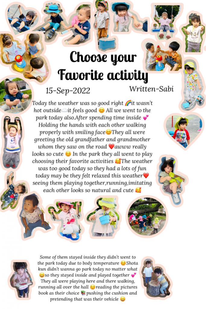 さて、日々の記録であるドキュメンテーションはスタッフそれぞれの”子どもをみる視点”が記されており、目の前の子ども達にとってよりより保育を追求するための大切なツールとなっています。