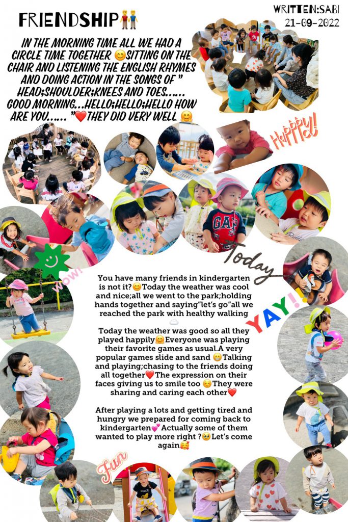 最近、子どもたちの口から『Yummy!』『HELLO!』などの言葉や、ABC SongsやThe Wheels on the Bus.などの歌が自然と聴かれるようになりました。