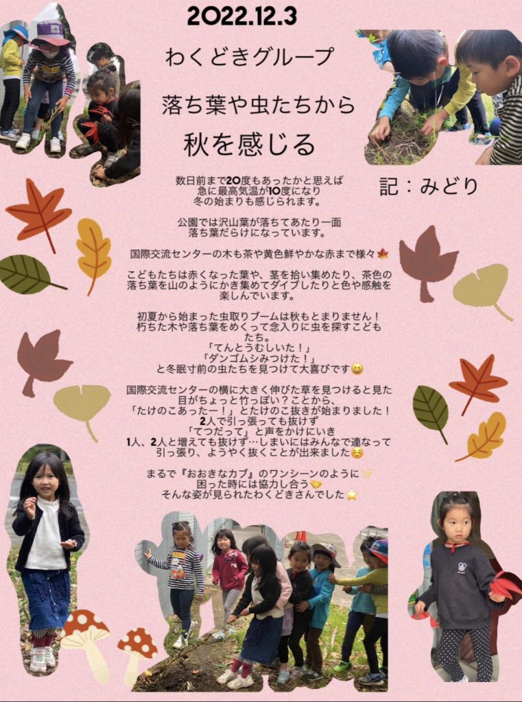 【元住吉】ドキュメントから〜落ち葉や虫たちから秋を感じる