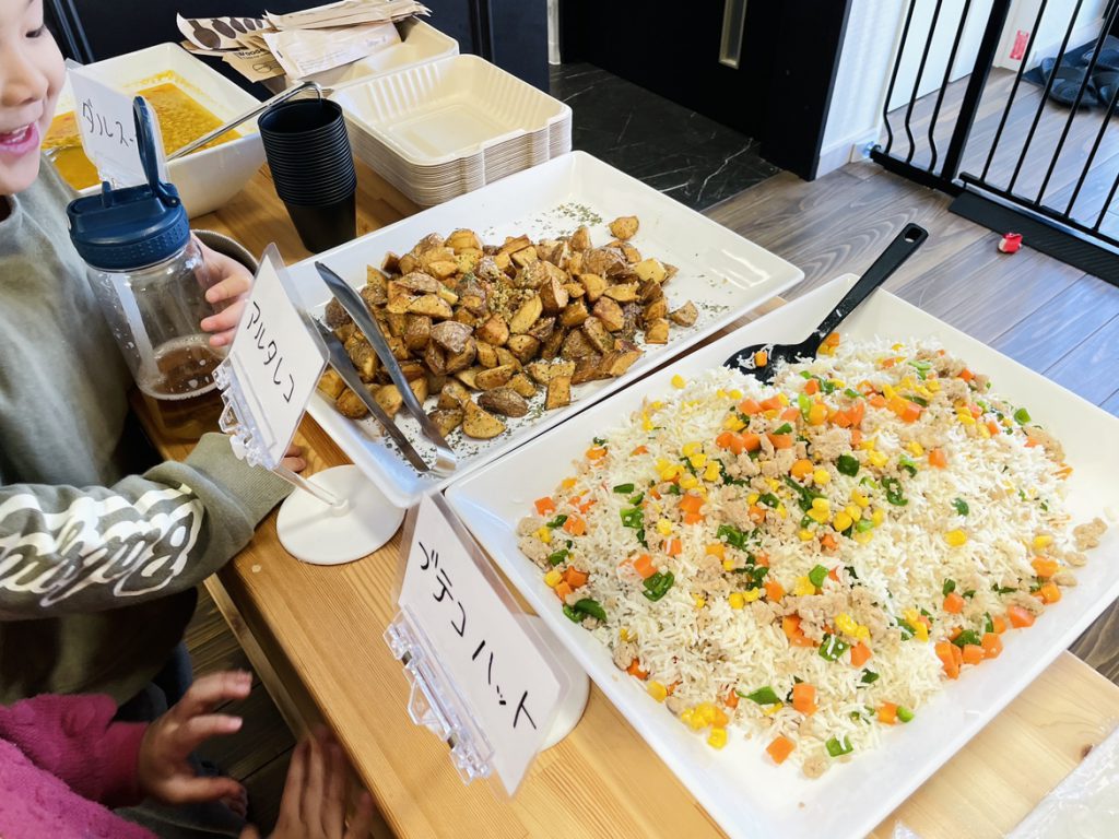 色鮮やかに盛り付けられた大皿に子どもも大人も心踊るひととき。