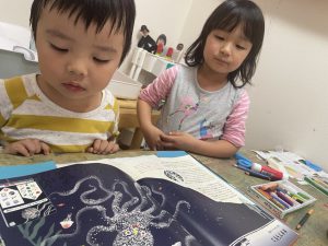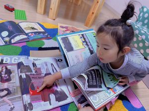 また、仕掛けとして用意した雑誌を見ながら真剣なみんな。「かわいいなあ・・」「ドキドキしちゃうね」「ドキドキは楽しいよ!」など、興味深々な様子でした。