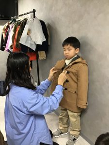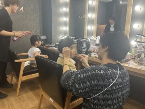 さて、子どもたちはというと、スタイリングしていただいたお洋服を着て、ヘアメイクさんにヘアセット。