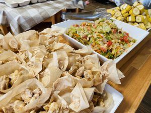 そしてお昼ご飯、おやつはキッチンスタッフ特製ガーナ料理です。(キッチンスタッフはこのイベントのために実際にガーナ料理を食べ、学びに行きました!)いつもとはなんだか違うごはんに、子どもたちはぱくぱく食べていました♪
