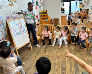 乳幼児期から様々な国籍のひとや異文化に触れる経験は、お互いを尊重し合う心を育み、また、保育園生活のなかで英語に浸ることによって子どもたちの英語への興味・関心を引き出します。トゥインクルキッズ高田保育園では、英語を教え込むのではなく、サークルタイムの時間に楽しみながらEnglish songを歌ったり、ダンスをしたり、日々の生活をネイティブスタッフと一緒に過ごすことで英語が聴こえる環境を作っています。