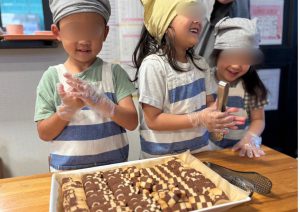 卒園していった一つ上のお兄さんたちが小学校へ行っているという憧れや、来年の自分たちの姿への期待から、小学校でもやっているであろう〝係〟をやってみたいという子どもたちの声からこのおやつ配膳が始まりました♪